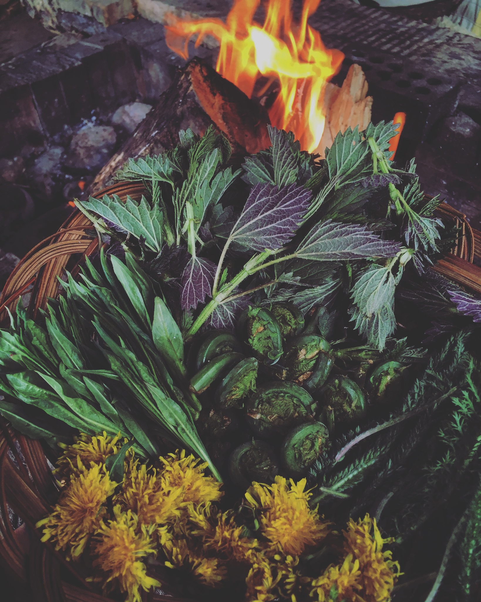 Do you nettle? I highly recommend. When they are young, we eat them not unlike you would use something like spinach or kale. Cooking or blending the young plants takes out the sting and makes it excellent food, drink and medicine for ingestion. Nettles in soup, sauce, in eggs, on pasta and rice, sautéed with garlic and so on. We basically just eat them on everything. The spring greens slough off the internal winter sludge from months of eating heavier foods and bring fresh life to our plates and potent nourishment to our bodies. Living seasonally, food is truly and most naturally how we celebrate and honour the turning wheel.